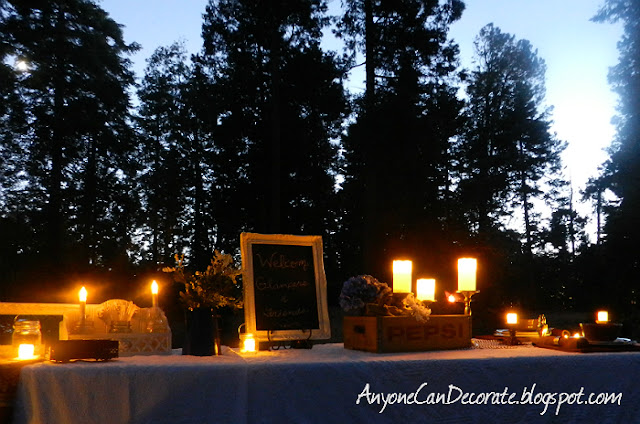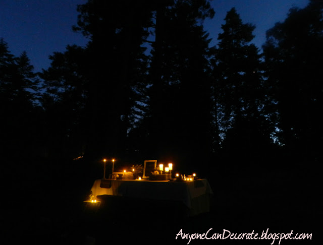 I loved lighting the candles and chandelier as the sun went down. It added a warm glow and soft ambiance to our campsite. We were out in the forest with hundreds of huge trees and we had created our own wonderful romantic haven... It was our home for the weekend.
