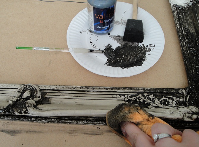 Next I generously applied glaze down the side of the frame to a larger area now that I had a feel for how easy it was. It is however always a good idea to work in smaller sections rather than doing an entire piece all at once.